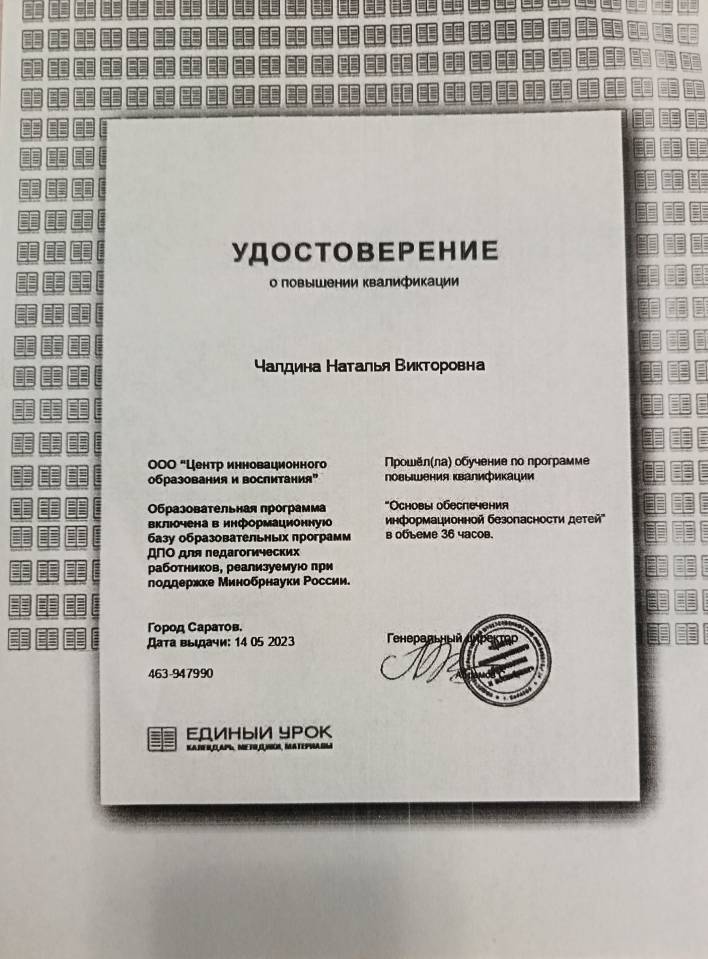 Удостоверение "Основы обеспечения информационной безопасности детей" 2023 г