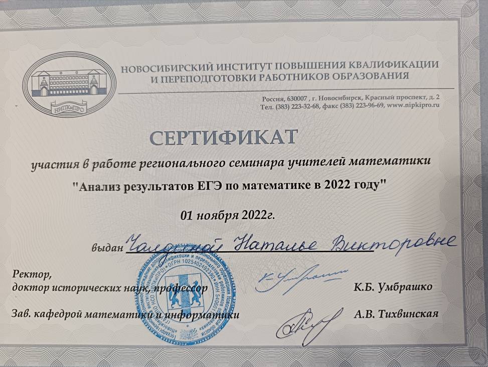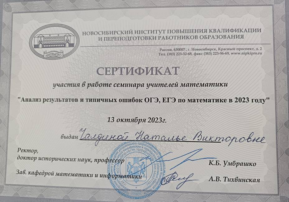 Сертификат "Анализ результатов и типичных ошибок ОГЭ,ЕГЭ по математике в 2023 году"