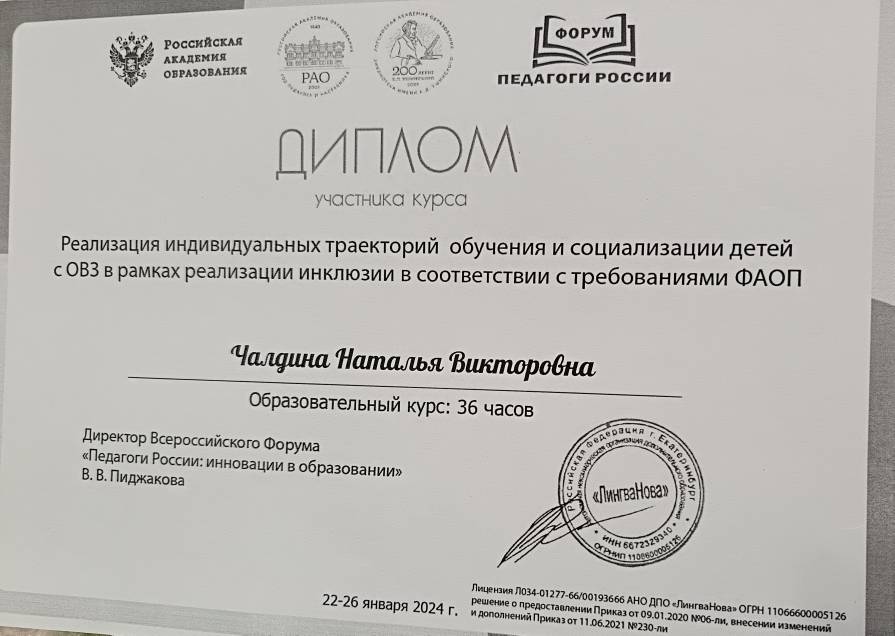 "Реализация индивидуальных траекторий обучения и социализации детей с ОВЗ в рамках реализации инклюзии в соответствии с требованиями ФАОП" 2024 г