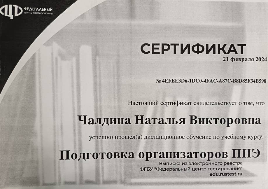 Сертификат "Подготовка организаторов ППЭ" 2024 г